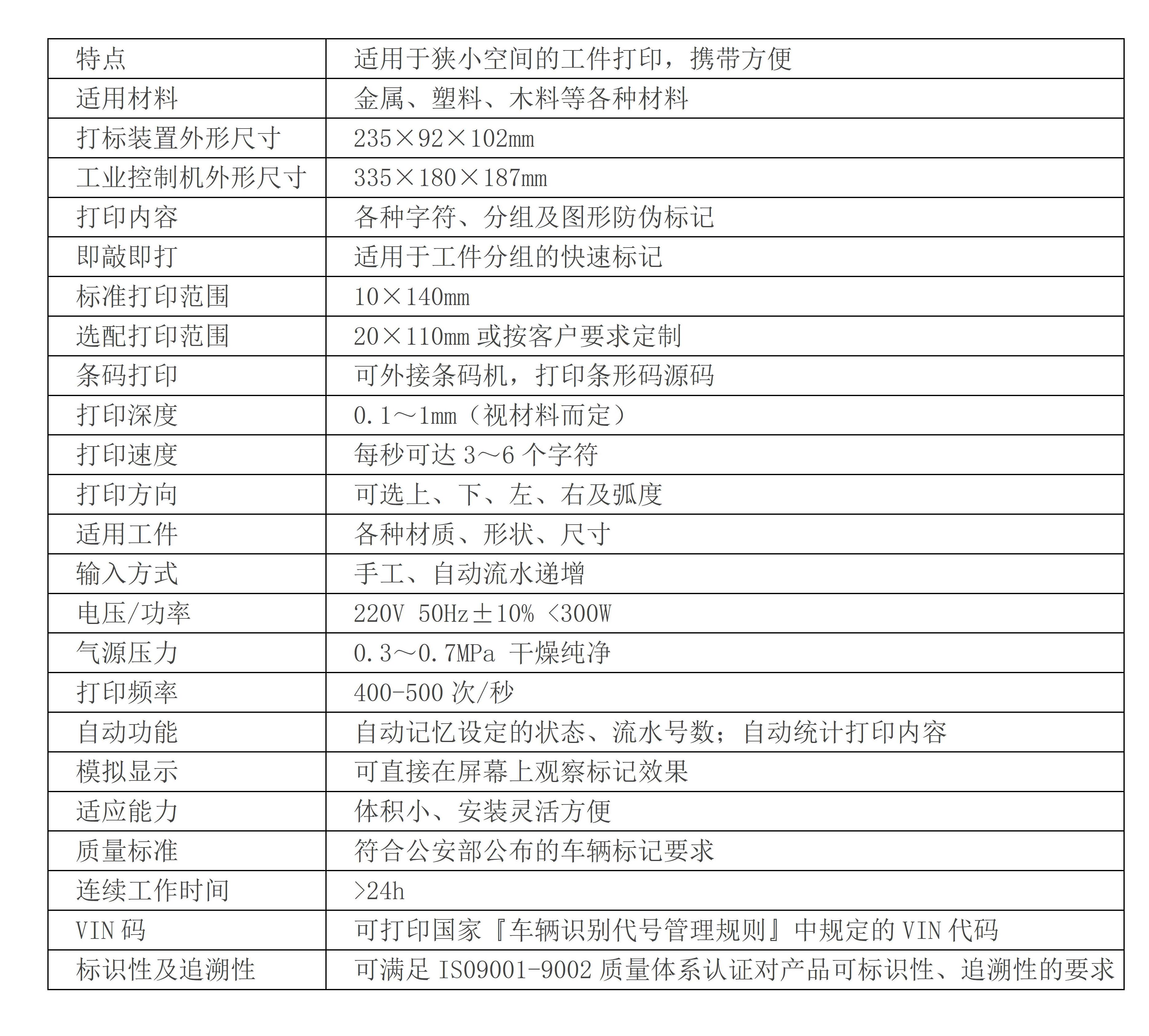 便攜式打標機是把打印機頭放到工件上去工作,機頭設計輕便,便于攜帶,對于不易搬動的大型工件輕松實現(xiàn)打標,適用于車架、發(fā)動機、鋼軌、鋼瓶等大工件的標記。